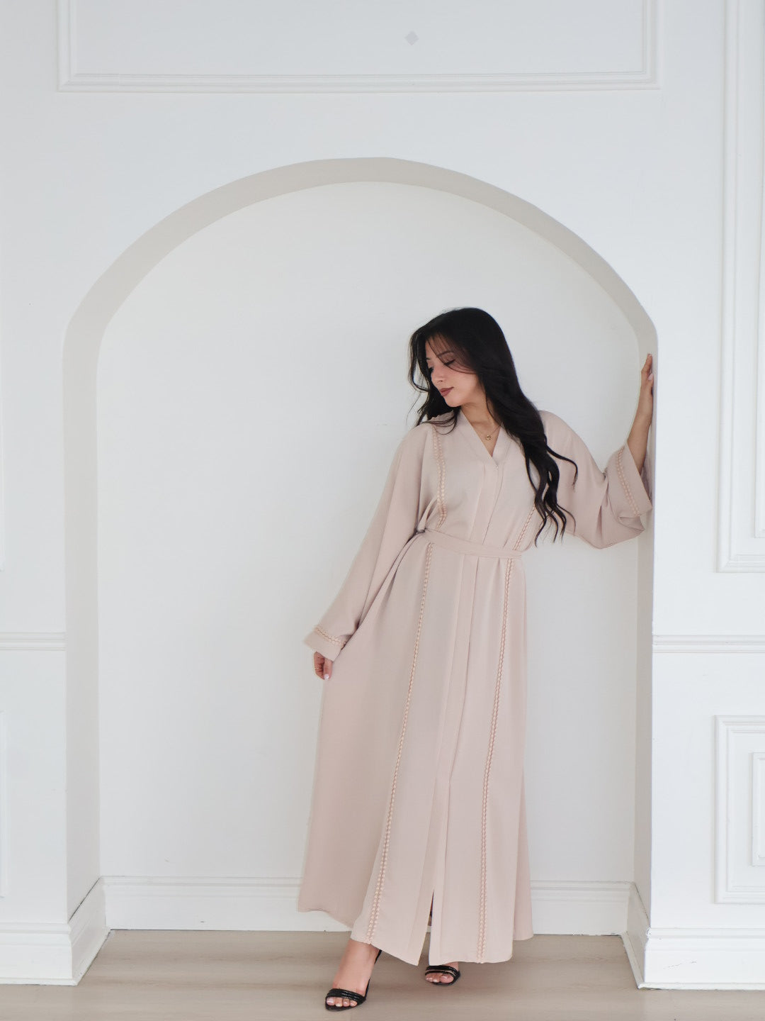 If you happen to be an ‘in-between size’, you can wear the two surrounding abaya sizes. For example, if you are 165, you can either get a 54 or a 56. If you like the abaya to fall a little longer or you want to wear heels with it, we would recommend sizing up.
